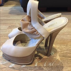 Debts open toe heels. Nude mesh strap. Original dust bag and box included