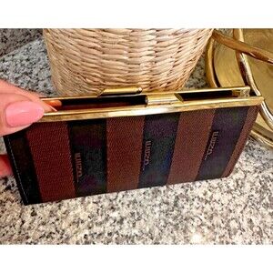 Fendi Pecan Stripe Clutch & Wallet Set | Vintage Designer Monogram