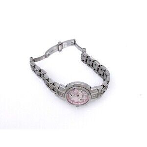 The Fendi Pink Stainless Steel Zucca Ladies Wristwatch Chrono with Pink Dial is a stylish and elegant timepiece designed for women. It features a silver bezel, pink dial, and pink stainless steel case and band. The watch has a chronograph function and an analog display. The watch is made of high-quality stainless steel, ensuring durability and longevity. It is perfect for formal occasions and can be worn as a dress watch.