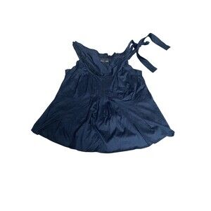 Fendi Pleated Sleeveless Tie Neck Blouse Tank Top Dark Navy Size 38 Cotton