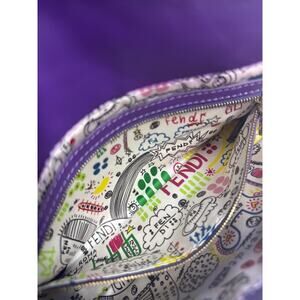 Fendi Purple Nappa Embossed Logo Leather Shoulder Baguette Bag