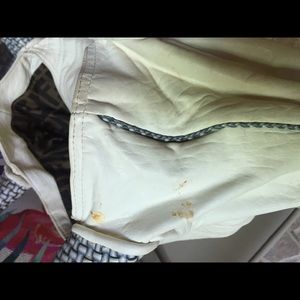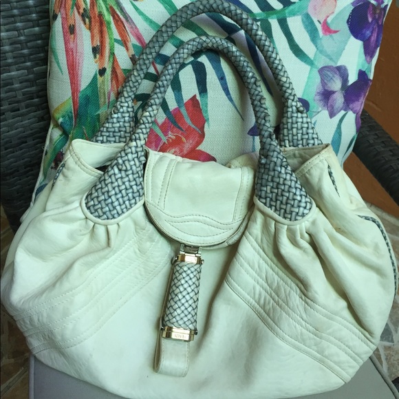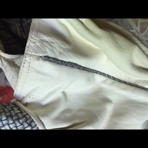 Beautiful inside material the outside has stains that I am sure with love and care she can be brought back to her original glory. I almost cut her up and made a clutch but the cost was like buying a new Fendi logo clutch. Make an offer!