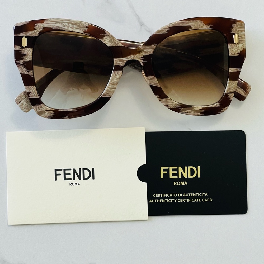 Brand new and authentic Fendi Python Sunglasses. Beautiful color contrasts, subtle logo monogramming patterns the gradient lenses of these modern cat eye sunglasses. You will only receive sunglasses and authentication card.