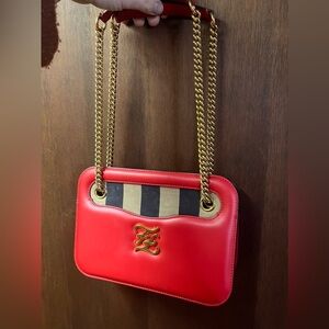 Fendi RARE Red Leather Karligraphy Chain Strap Shoulder Bag with COA