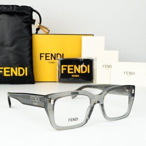 Fendi ROMA Men Eyeglasses Transparent Grey Rectangular FE50094I 020 BRAND NEW