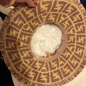 Stylish woven sun hat in brown and tan. Perfect for sunny days.