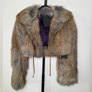 Details: Cropped cut, long sleeves, purple silk-blend lining, braided leather drawstrings, Fendi authenticity hologram & labels intact