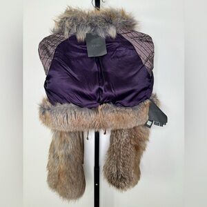 Material: Real fur (likely fox or raccoon, soft and voluminous)