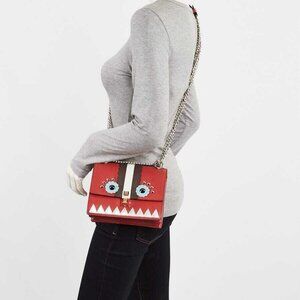 Fendi Red Leather Studded Mini I Kan Chain Shoulder Bag 8M0381