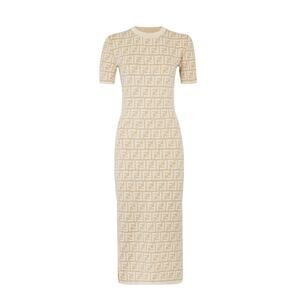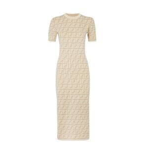 Reversible sheath dress with crew neck and short sleeves. Made fine, double-sided wool knit, with one side in beige and the other customized with a matching-tone FF motif.