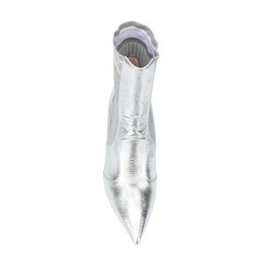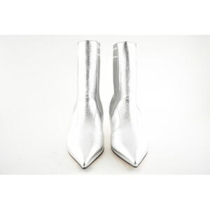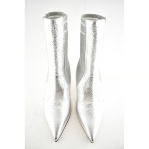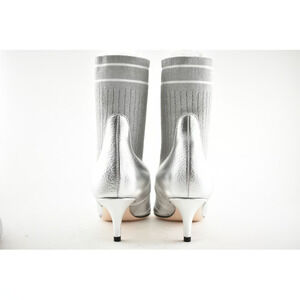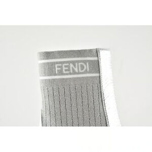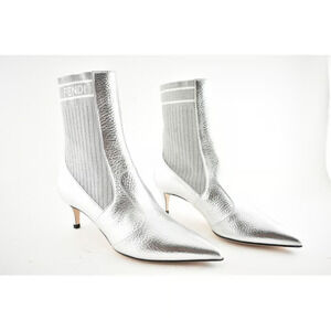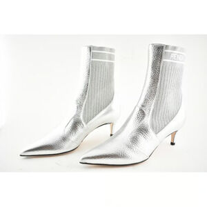 NIB Fendi Rockoko Silver Scuba Stretch FF Logo Knit Sock Ankle Kitten Heel Bootie 36