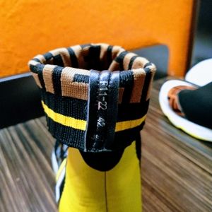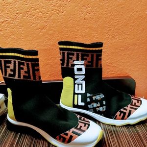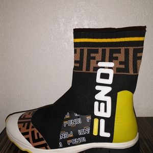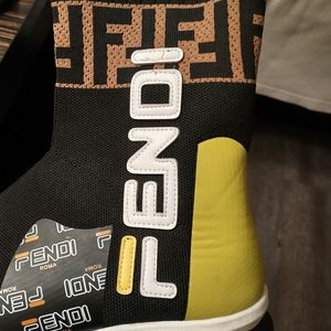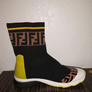 Fendi Mania Sock Sneakers Green Neon Edition with brown monogram printed accent. Vester styled FENDI Authentic Women's Size 9 in MINT condition.