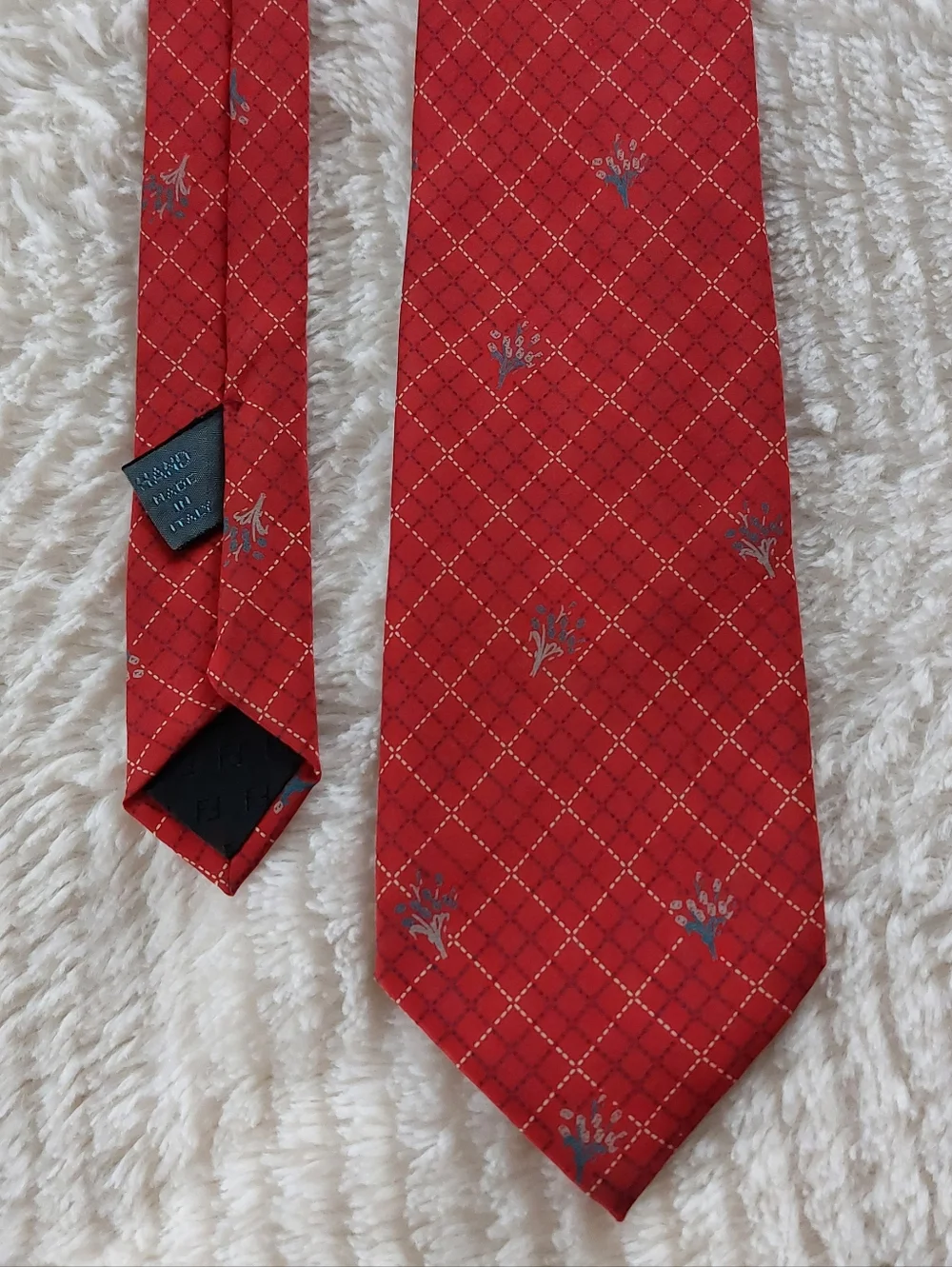Fendi Tie with Flower / Floral / Bouquet Design. Hand Made in Italy. Fendi signature FF logo on underside. Great condition.