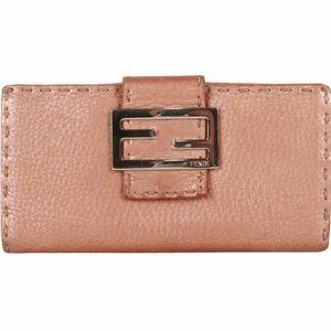 Fendi Rose Gold Metallic Leather Selleria Wallet