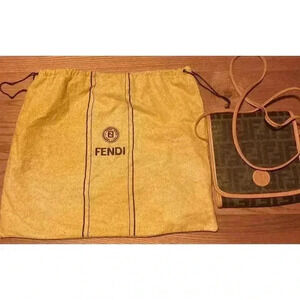 Fendi SAS Vintage Crossbody Brown Shoulder Bag Zukka Purse Logo S.A.S Roma Italy