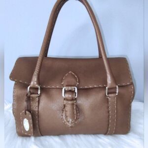 Gorgeous Fendi Selleria Linda shoulder bag / satchel in excellent preloved condition. There are no major callouts other than faint spots on the linen lining and a small rub on one corner. Absolutely beautiful bag and thick, buttery leather.