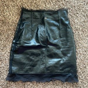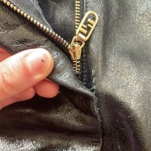 Size 40 Fendi black leather high waisted short skirt. Too small for me, Note a couple stitches ripped trying to get it on, doesn’t affect the way it looks