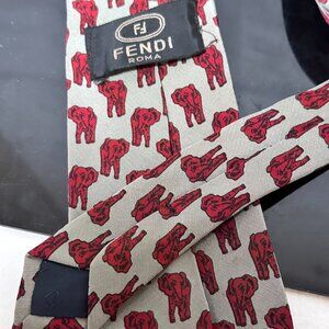 Fendi Silk Tie Necktie Neckwear Elephant Red Khaki Designer Safari Luxury