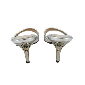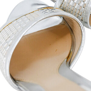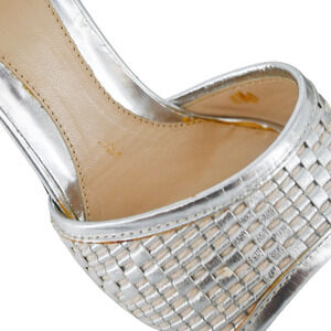 Fendi Silver Metallic Woven Leather Mules Size 37