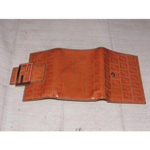 Fendi Small F Logo Orange Taupe Patent Wallet