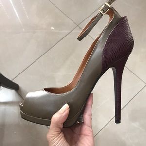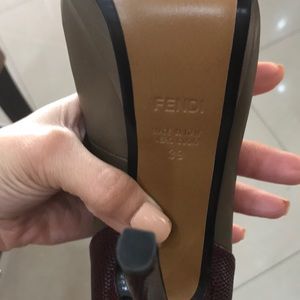 100% authentic Fendi heels NIB never worn. Material is Spuntata Nappa made with Lizard skin in the heel area. Beautiful shoes for all the upcoming events. Shoes are on immaculate condition and were purchased at Neiman Marcus. NO TRADES DO NOT ASK! Color is a burgundy and olive. Color called Fango and Vino.