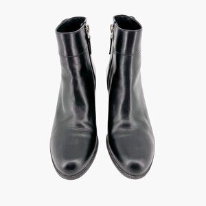 Fendi Stud Ankle Boots EU 38 US 8 Black Leather Bootie Low Block Heel Spike Zip