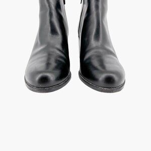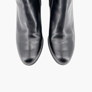 Condition: Boots show signs of use, including creasing, scuffing of leather uppers/edges of block heels, and wear on outsoles. Otherwise in good overall condition.