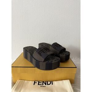 Fendi Sunshine Flatform Platform FF Logo Jacquard Baguette Feel Slides