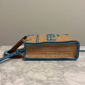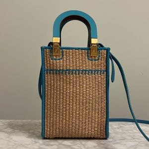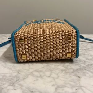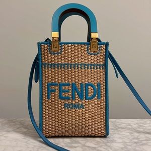 Fendi Sunshine Mini Straw Shoulder Bag Natural Blue
