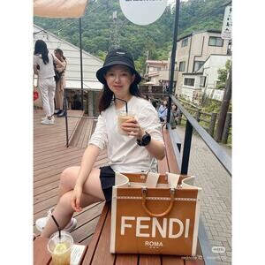 Fendi Sunshine Shopper Tote Bag in Canvas dnd Patent Leather