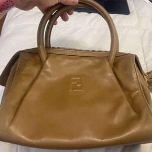 Fendi Tan/Brown Leather 2 Way Purse w/Strap,AUTHENTIC