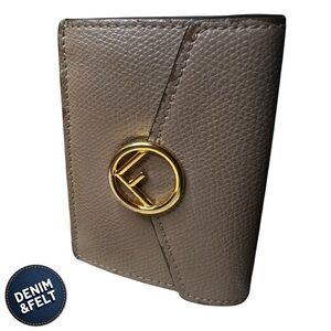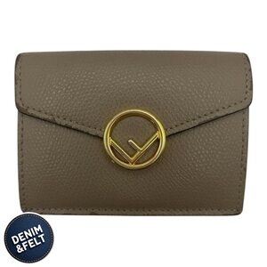 Fendi Textured Cruise Leather Micro Trifold Compact Wallet in Khaki | PRELOVED!!