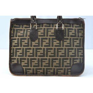 Inside, it has one large compartment and a zip close pocket. It is lined in brown leather and it is very clean. There is a gold embossed stamp that reads 'Fendi SAS, Roma, Made in Italy'. It predates serial numbers, but is 100% authentic- don't miss out!