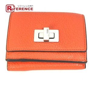FENDI Peekaboo Trifold Wallet Leather Orange Includes a Certificate of Authenticity!