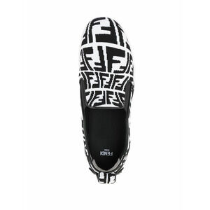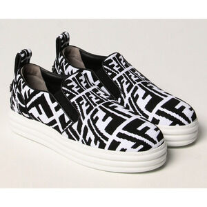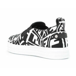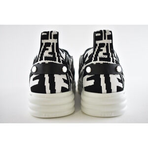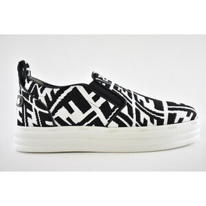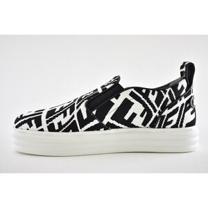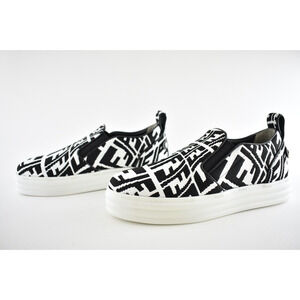 Fendi Vertigo Black White FF Logo Platform Low Top Slip On Trainer Sneaker 37.5