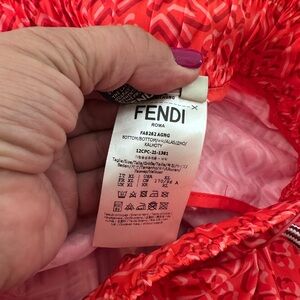 Bold red and orange trunks with iconic Fendi pattern. Elastic waistband with drawstring.