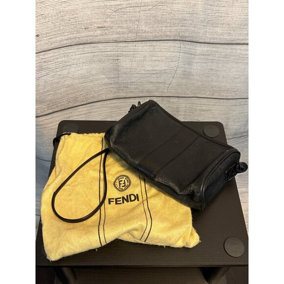 Fendi Vintage Black Leather Small Handbag With Dust Bag Italy