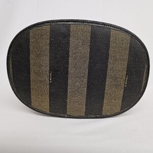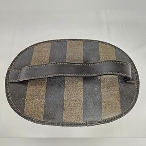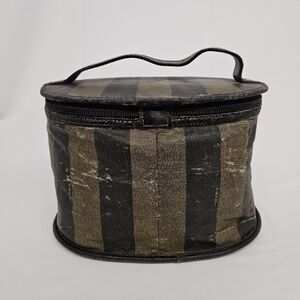 Elegant Fendi cosmetic bag with a striped design. Features a convenient handle and secure zipper closure. Perfect for travel or daily use