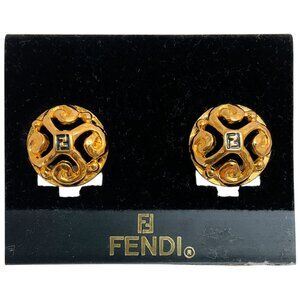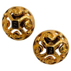 Fendi Vintage Gold Plated Round Filigree Earrings
