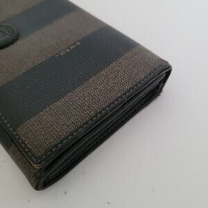 Fendi Vintage Pequin Wallet Canvas Leather Wallet Black Clutch Envelope Large