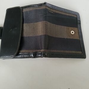 Fendi Vintage Pequin Wallet Canvas Leather Wallet Black Purse Bifold Compact