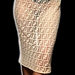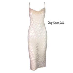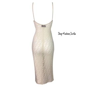 Fendi Vintage Zucca Monogram Logo Dress Sheer Nylon Lace Maxi Bodycon Dress