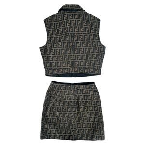 -Fendi Vintage Zucca Reversible Vest and Skirt Set