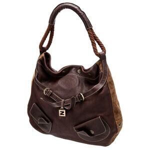 Fendi Vintage Zucchino FF Brown Leather and Suede Hobo