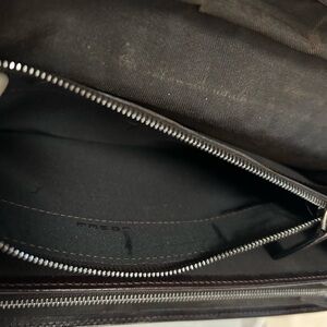 Elegant Fendi clutch with signature logo design. Sleek black and brown pattern.