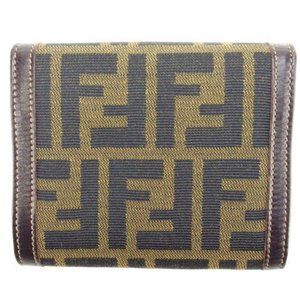 Fendi Wallet Purse Trifold Zucca Green Black Woman Authentic Used