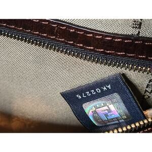 Very good condition: This vintage tote shows signs of normal use, including slight rubbing on the corners, slight wear on the leather trim, softening of the handles, and clean interior lining. Stitching remains intact and the zipper pocket functions smoothly. The canvas maintains good structure with visible FF pattern throughout.