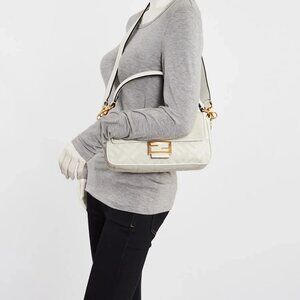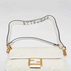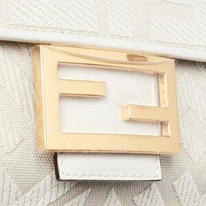 Fendi White FF Cotton Canvas Medium Baguette Bag - 8BR600