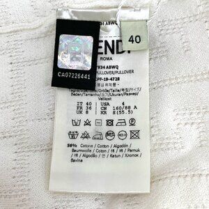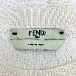 Fendi White Logo Jacquard Cotton-Viscose Knit Sweater Round Neck Short Sleeve Si