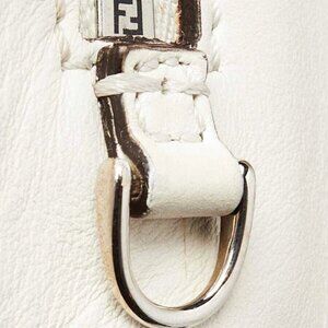 Have some fun with this hard stylish bag from Fendi! Featuring gorgeous white leather with multicolor leather flowers and conical metal studs in the center. The bag is spacious and will hold all that you need and even features a exterior zip pocket and comfortable backpack straps. You won't want to leave home without it!